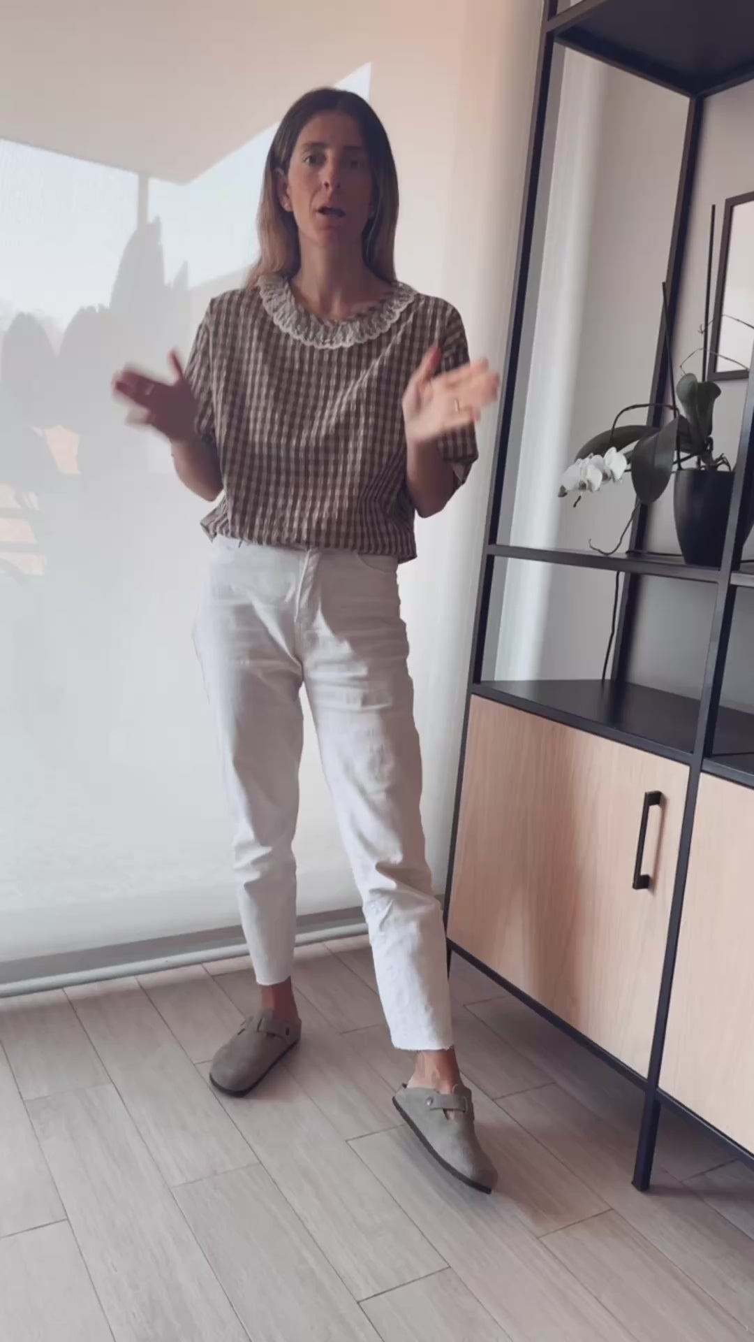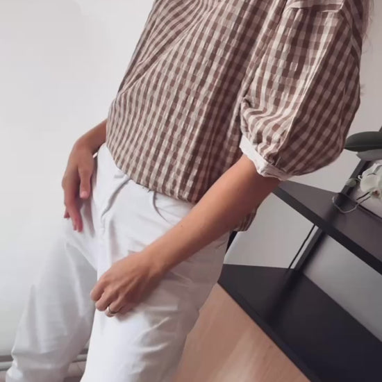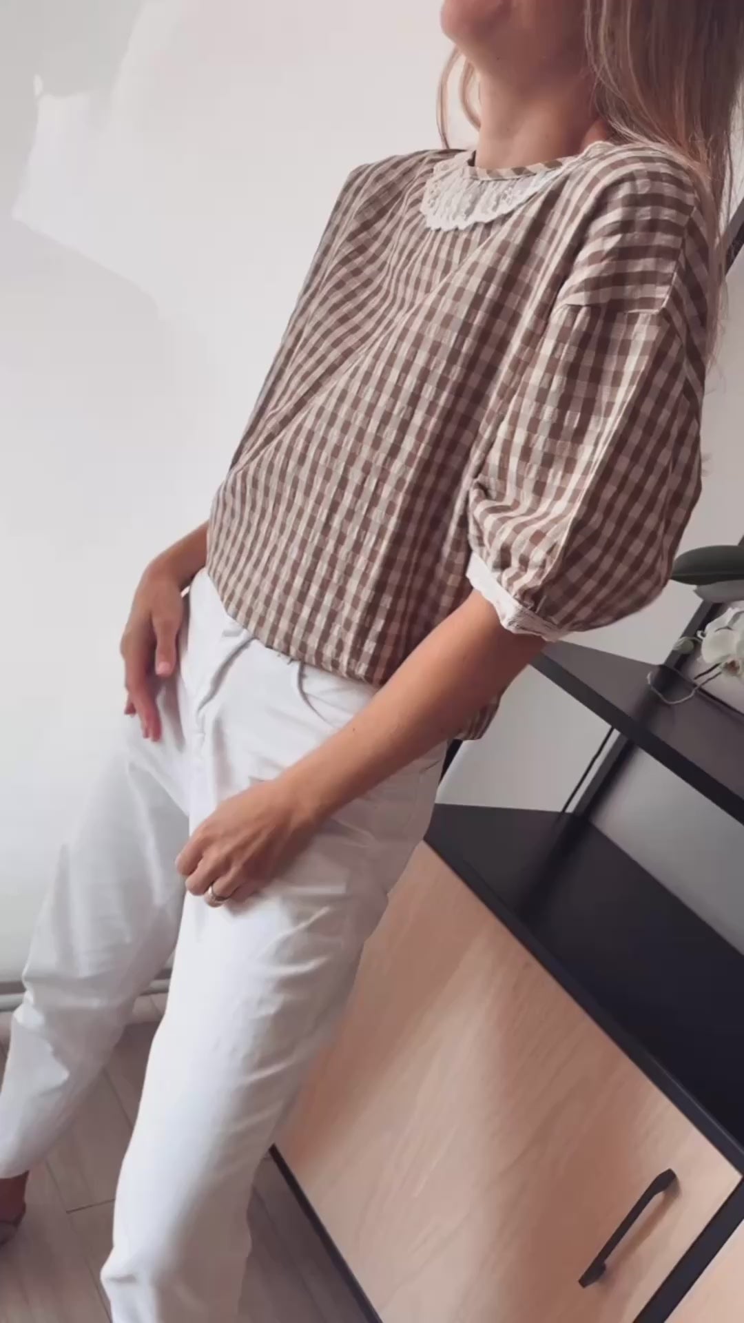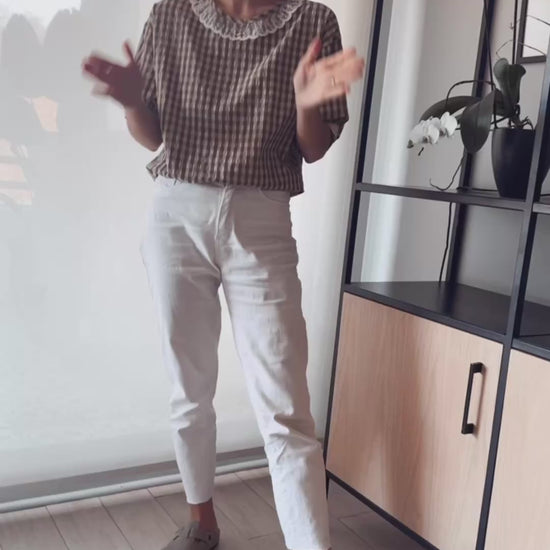 Blusa con detalle de cuello babero y estampado vichy. volado.