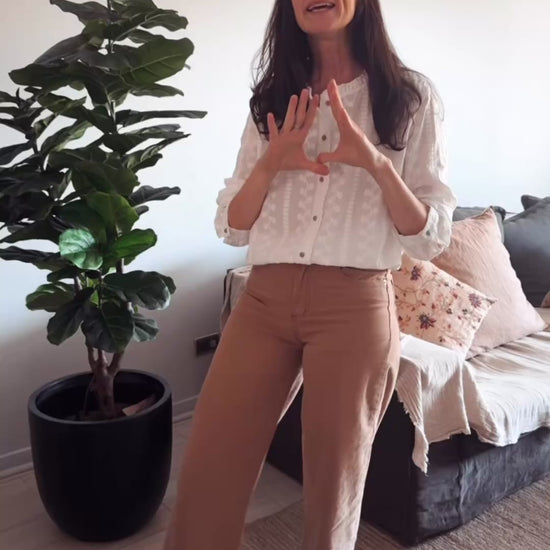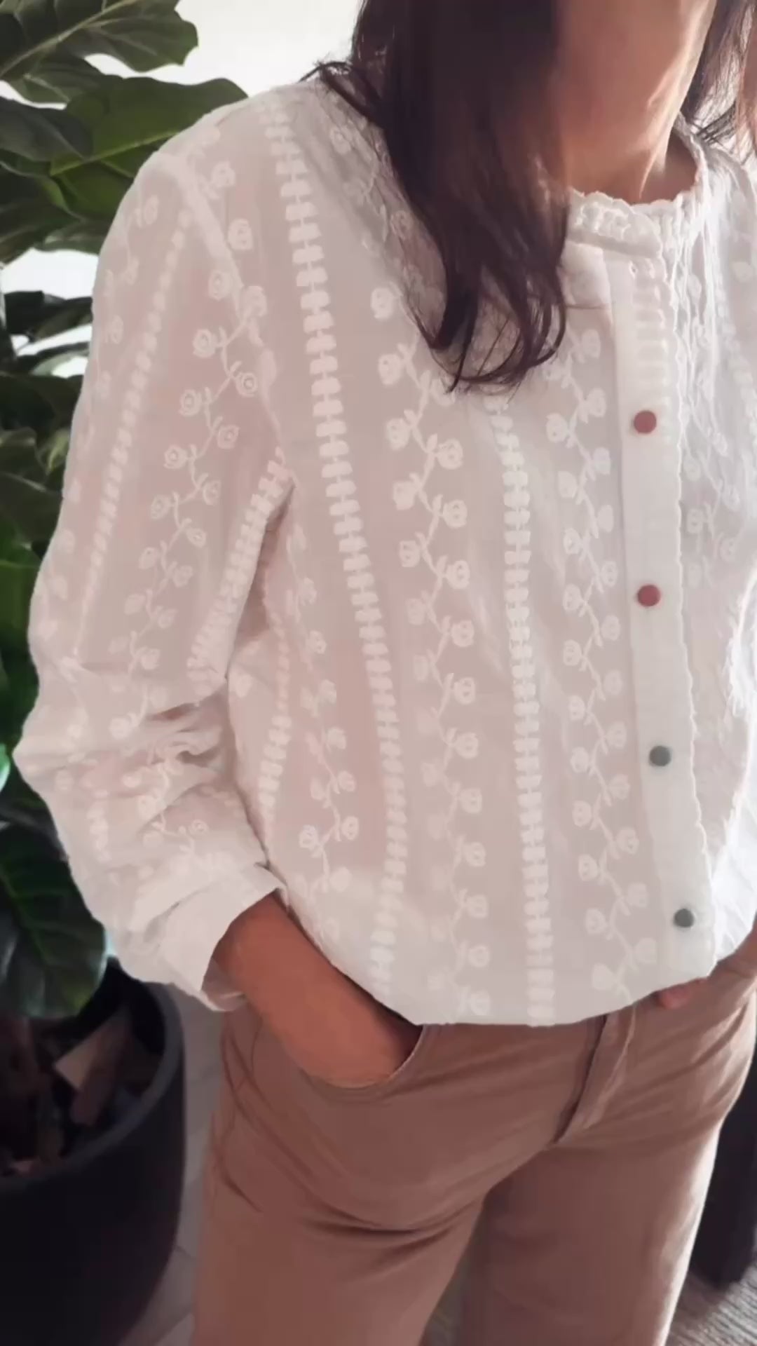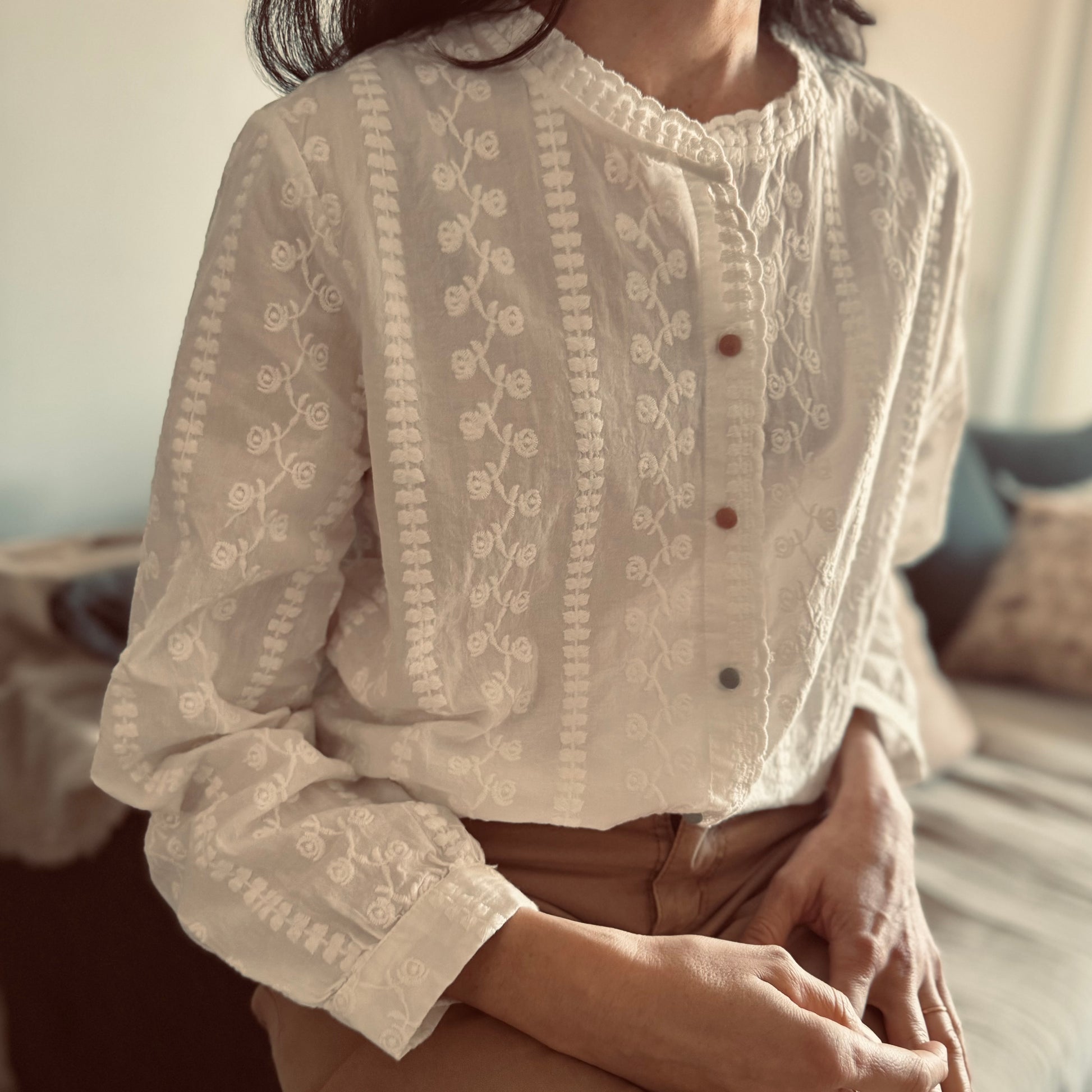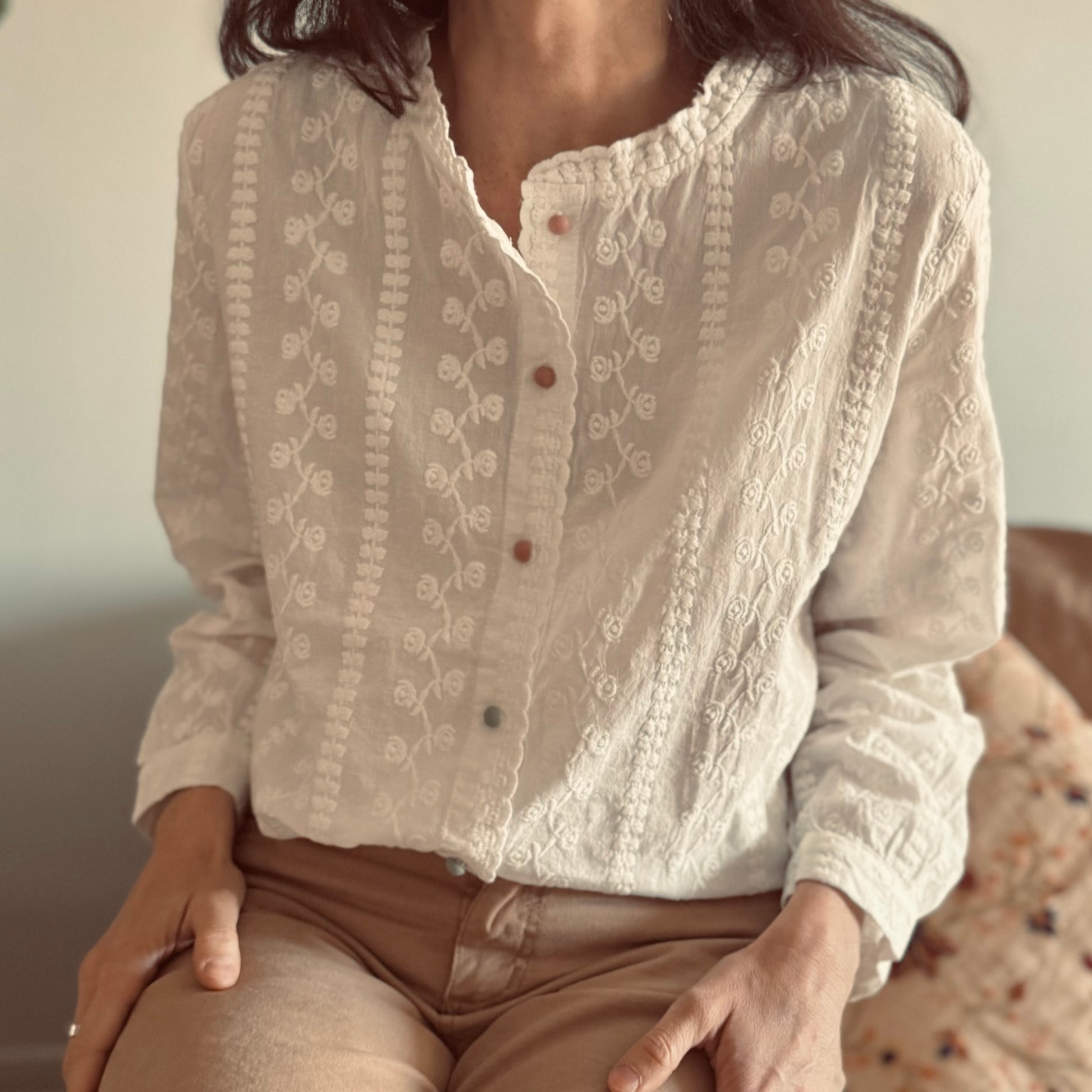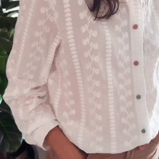 Camisa integra de broderie. Detalle de 3 colores rosados viejo y 3 verde seco.